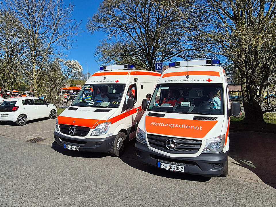 Am Merschkamp wurde am 07. April eine 500kg-Weltkriegsbombe gefunden. Aufgrund der Größe des Kampfmittels wurde der Evakuierungsradius auf 500m erweitert, rund 3.300 Menschen mussten ihre Wohnungen verlassen. In der Halle Münsterland wurde von den Johannitern eine Betreuungsstelle eingerichtet. Das DRK war mit zwei Krankentransportwagen, einem Rettungswagen, drei Betreuungskombis zum Personentransport und dem Leiter Hilfsorganisationen im Einsatz.