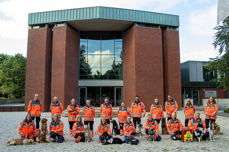 Aktuell hat die Einheit 22 Mitglieder und ist mit insgesamt sechs geprüften Teams für Einsätze im Bereich Mantrailing und Flächensuche gut aufgestellt. „Am 1. September 1999 haben wir mit damals sechs Mitgliedern beim Deutschen Roten Kreuz Münster begonnen“, erinnert sich Leiterin Marion Dahlmann. „Wir wurden im DRK-Ortsverein Nienberge herzlich aufgenommen und man stürzte sich mit uns in das Abenteuer Rettungshundearbeit. Durch das große Netzwerk im DRK konnten wir schnell Kontakte zu anderen Rettungshundeeinheiten in Westfalen-Lippe herstellen und gemeinsame Ausbildungen sowie Übungen organisieren.“